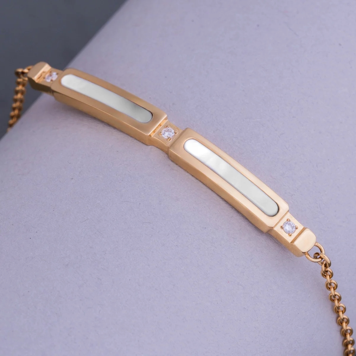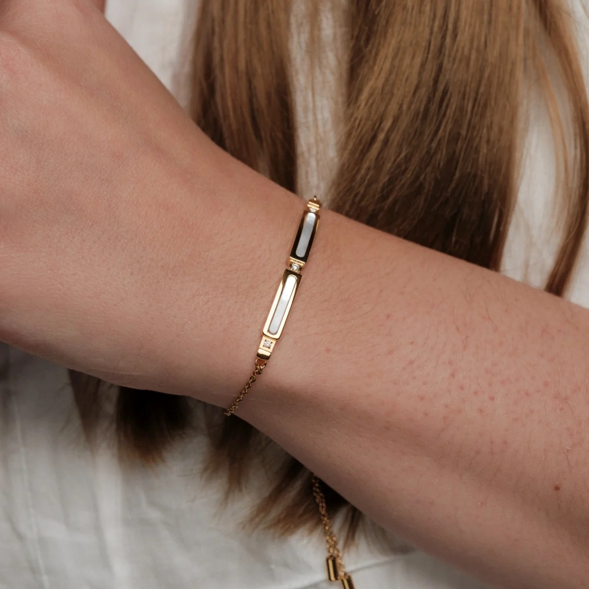 Finde mit unserem Armband aus weißem Perlmutt und echt Gold vergoldetem Edelstahl dein perfektes Accessoire und erlebe unvergessliche Momente, die dich dein Leben lang begleiten.