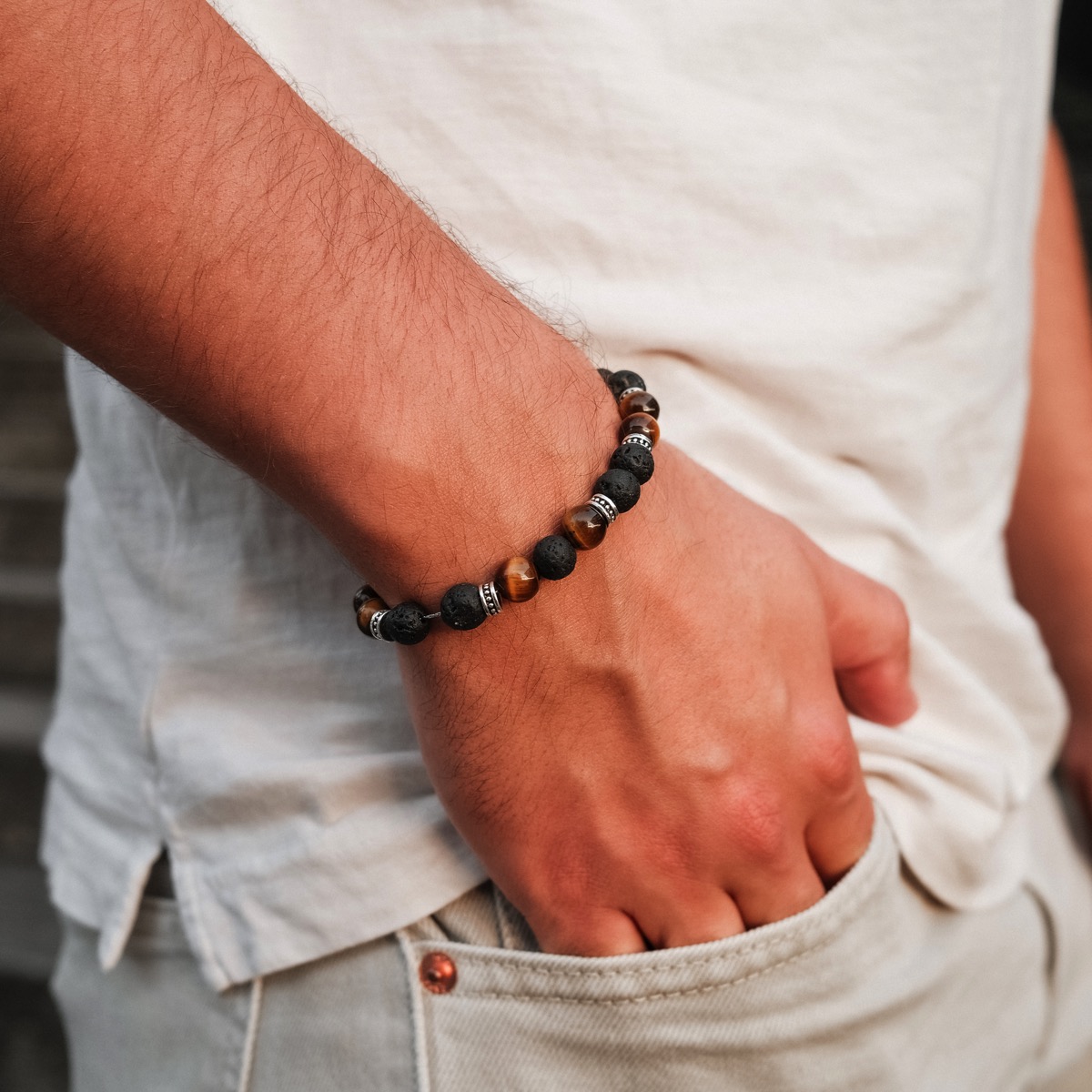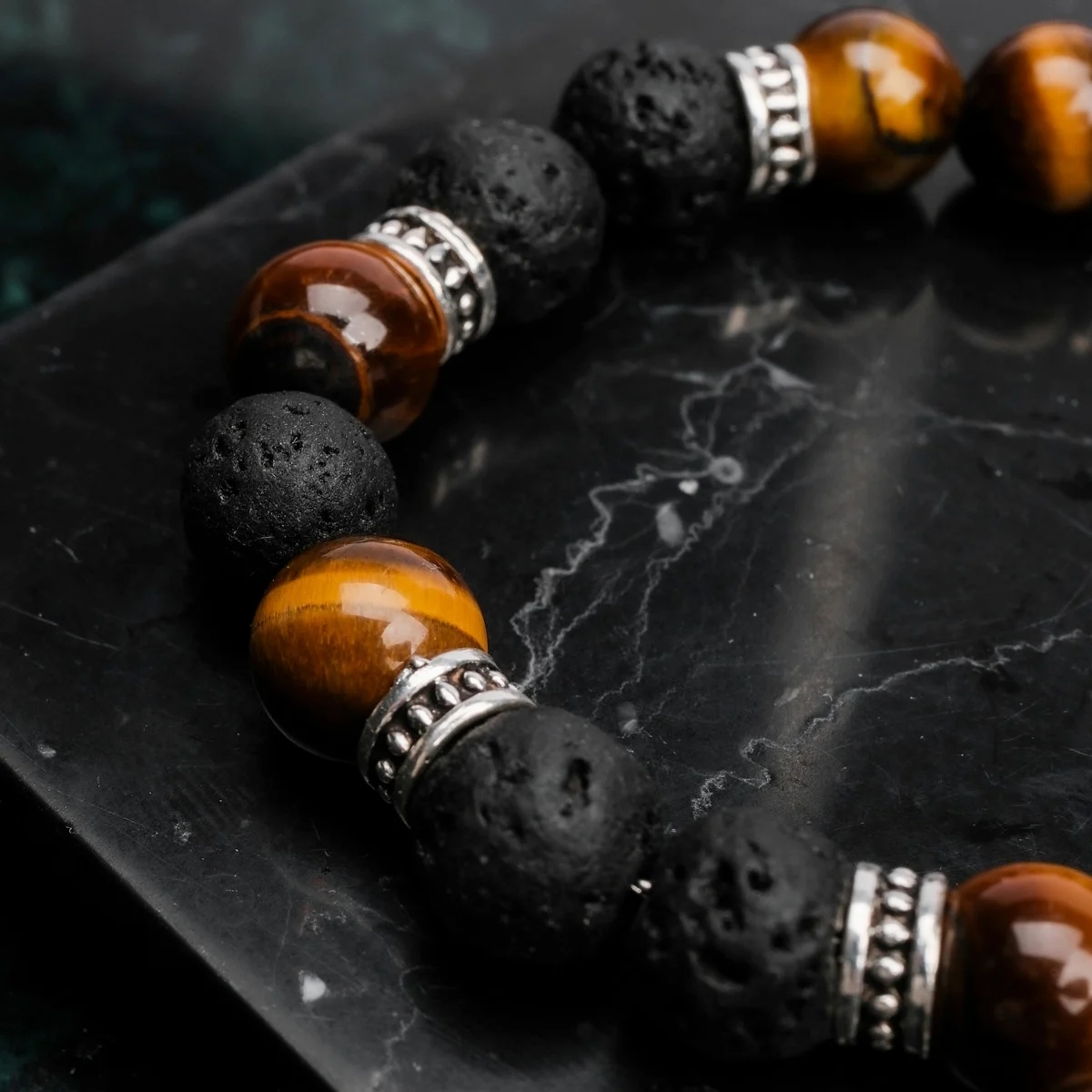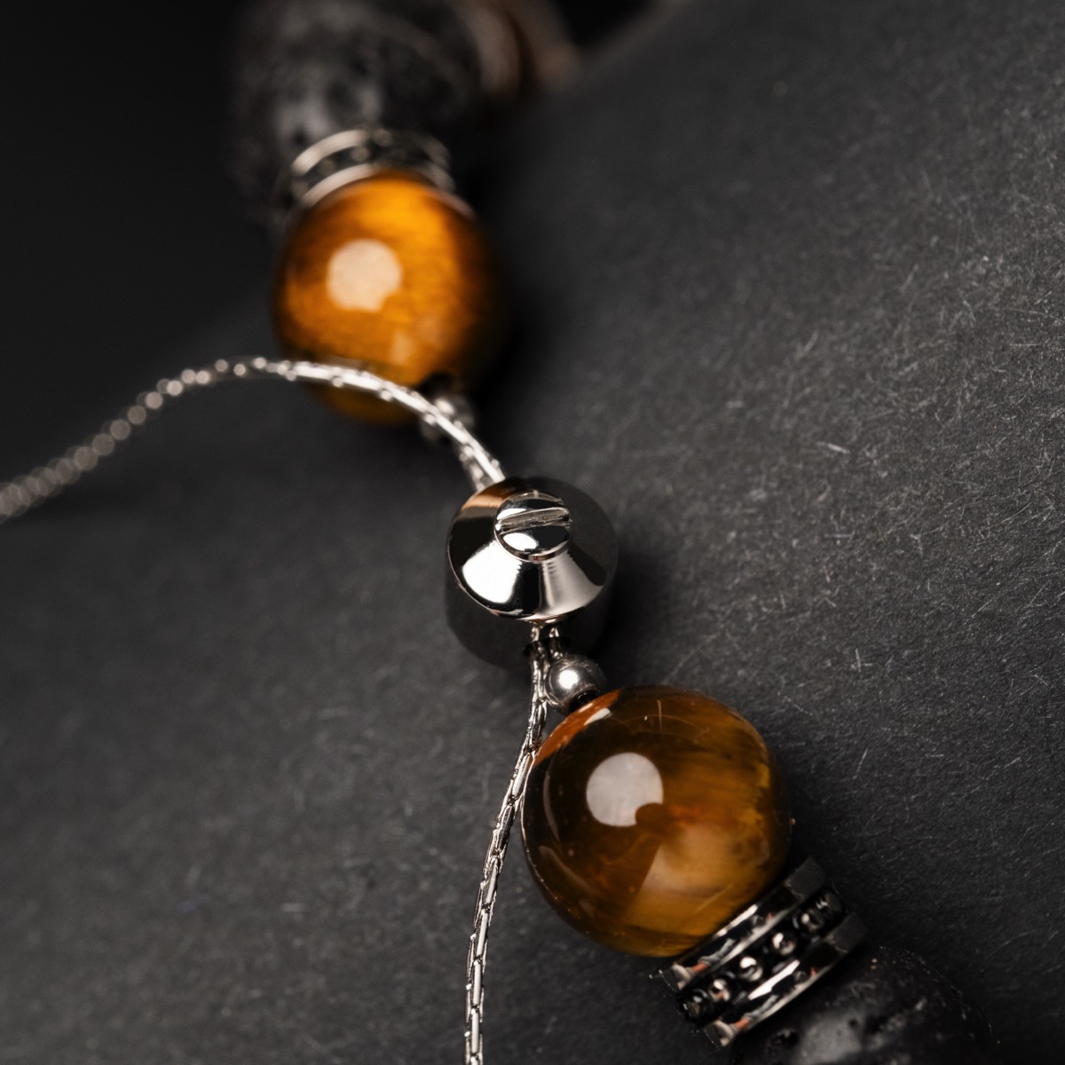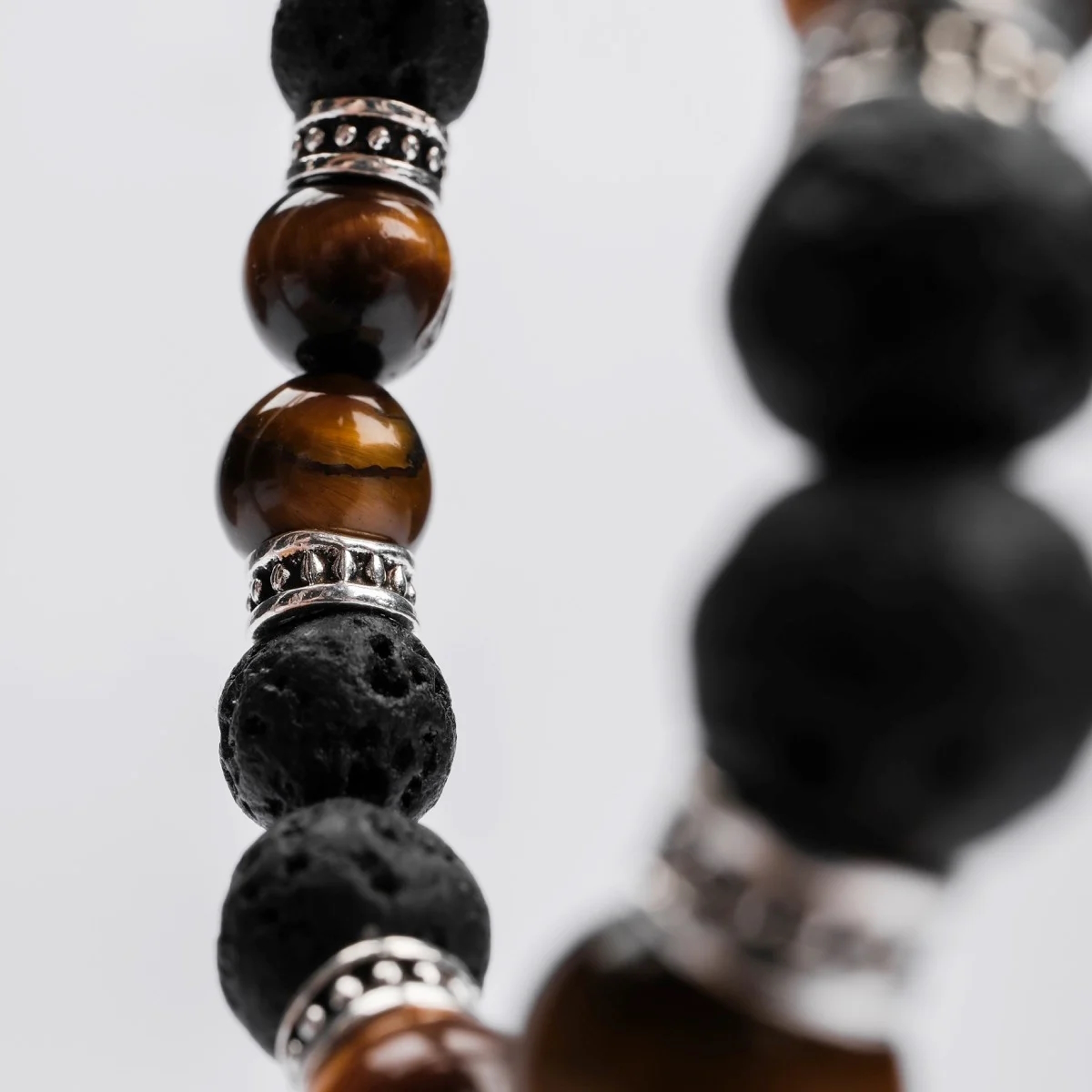 - Material der Perlen: Echtes Tigerauge und schwarzes Lavagestein
