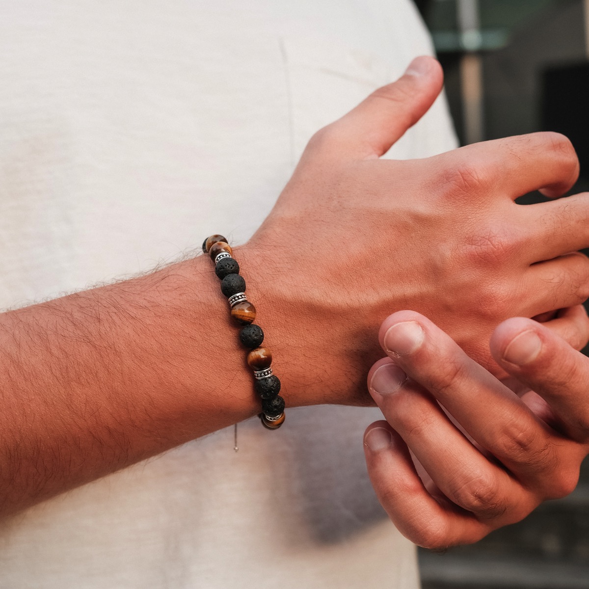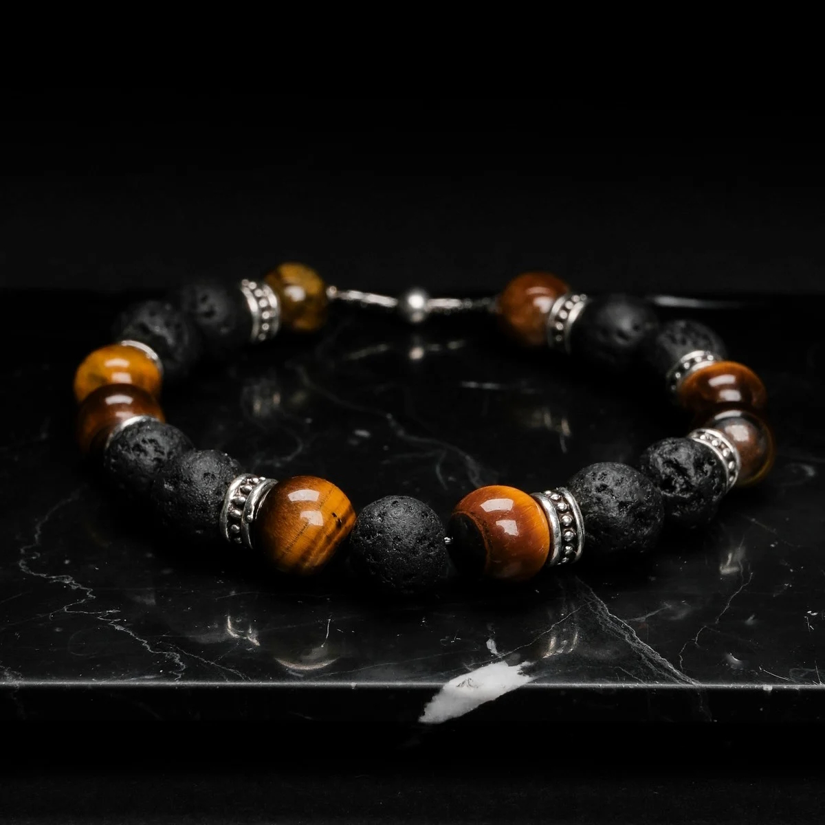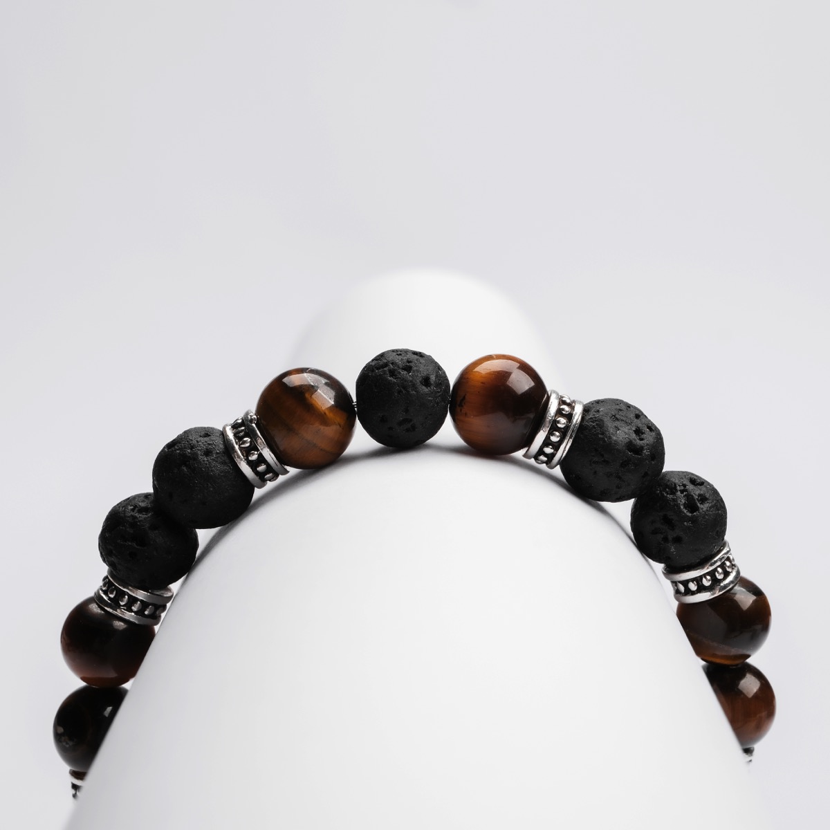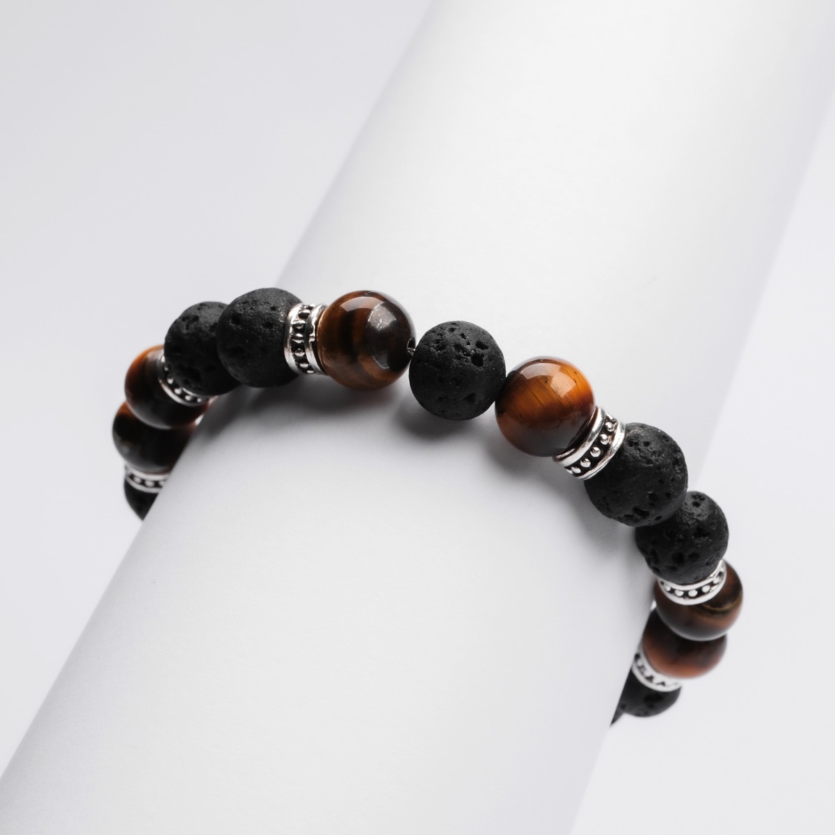 - Material der Perlen: Echtes Tigerauge und schwarzes Lavagestein