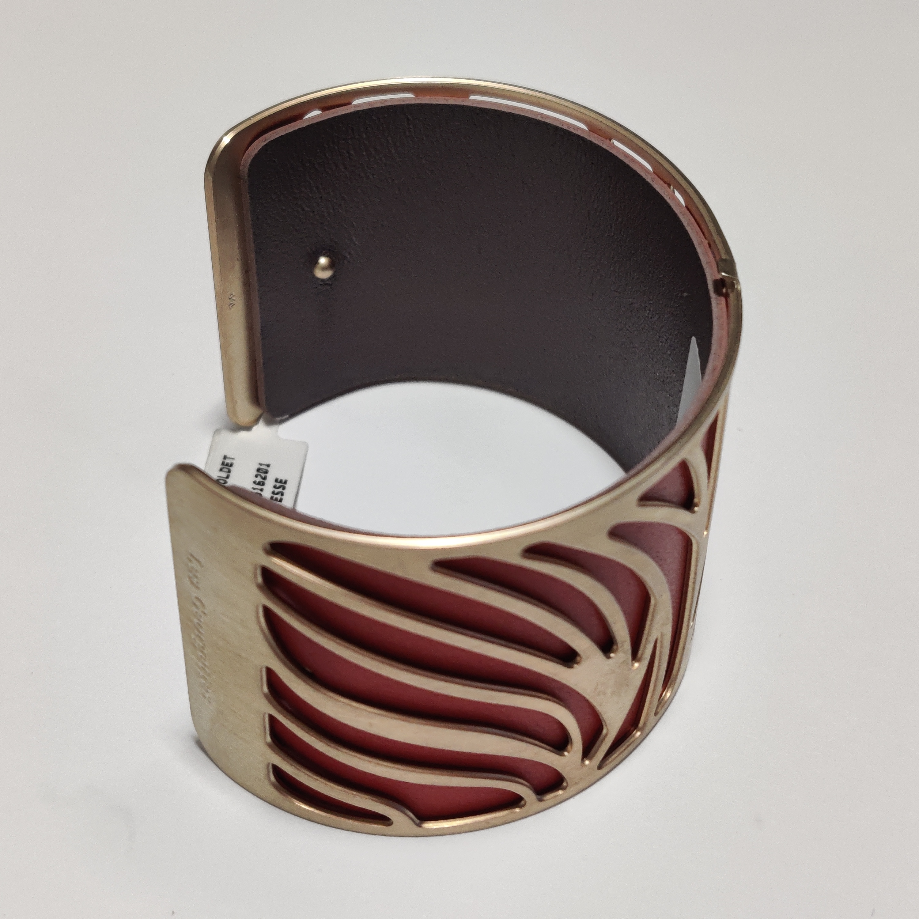 Dieser breite Armreif ist mehr als nur ein Accessoire. Durch das patentierte Konzept lässt er sich in Sekundenschnelle individualisieren: Tragen Sie die vergoldete Messingspange pur für einen minimalistischen Edelmetall-Look oder kombinieren Sie sie mit einem der separat erhältlichen, 40 mm breiten Lederbänder. Da die Leder-Inlays beidseitig farbig sind, bietet Ihnen ein Band direkt zwei völlig neue Styles.