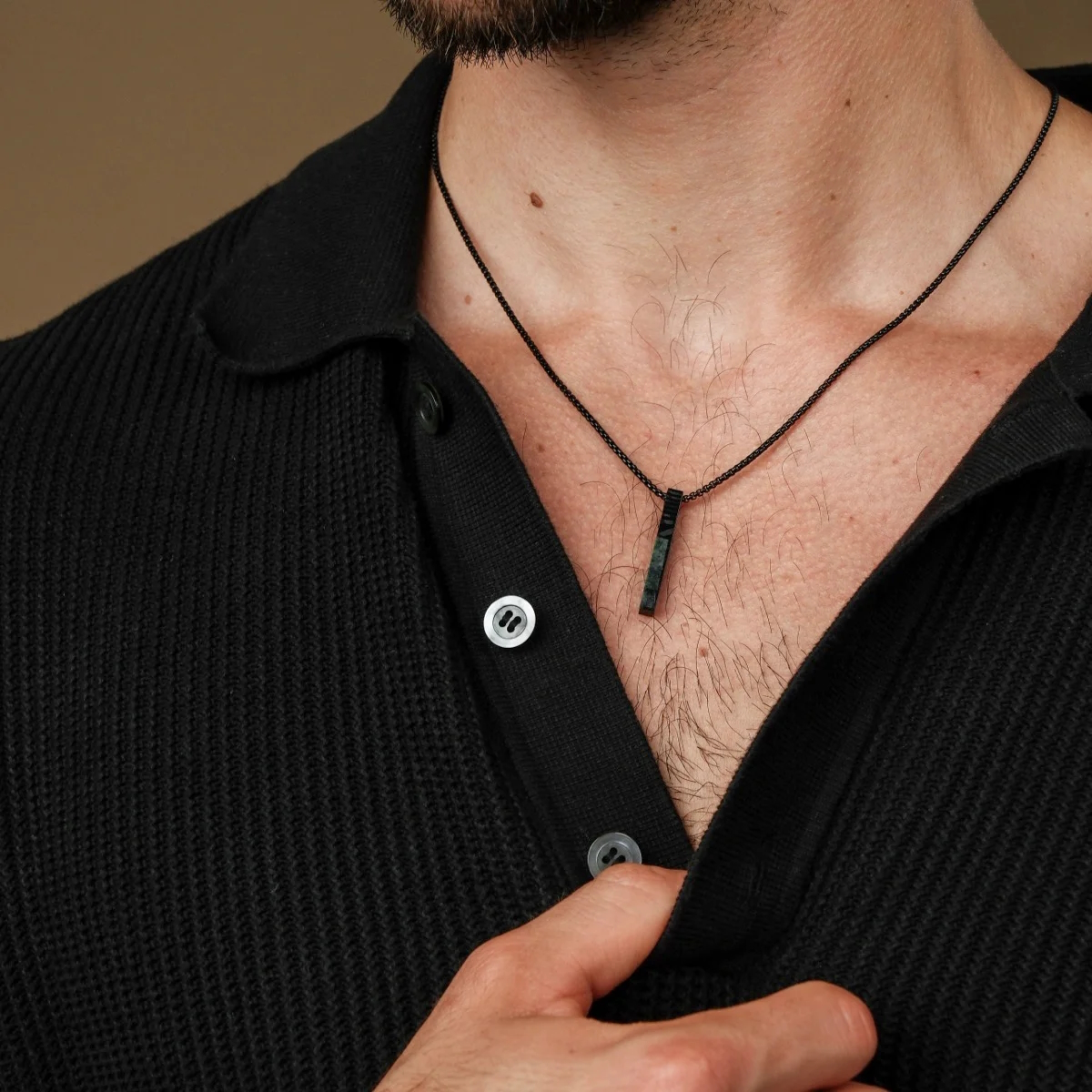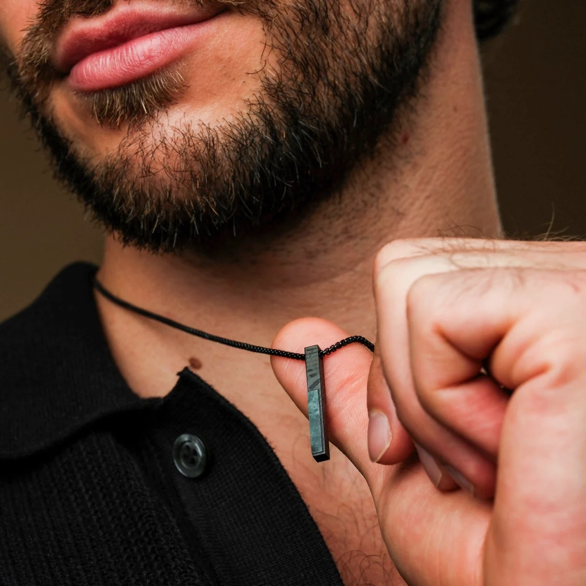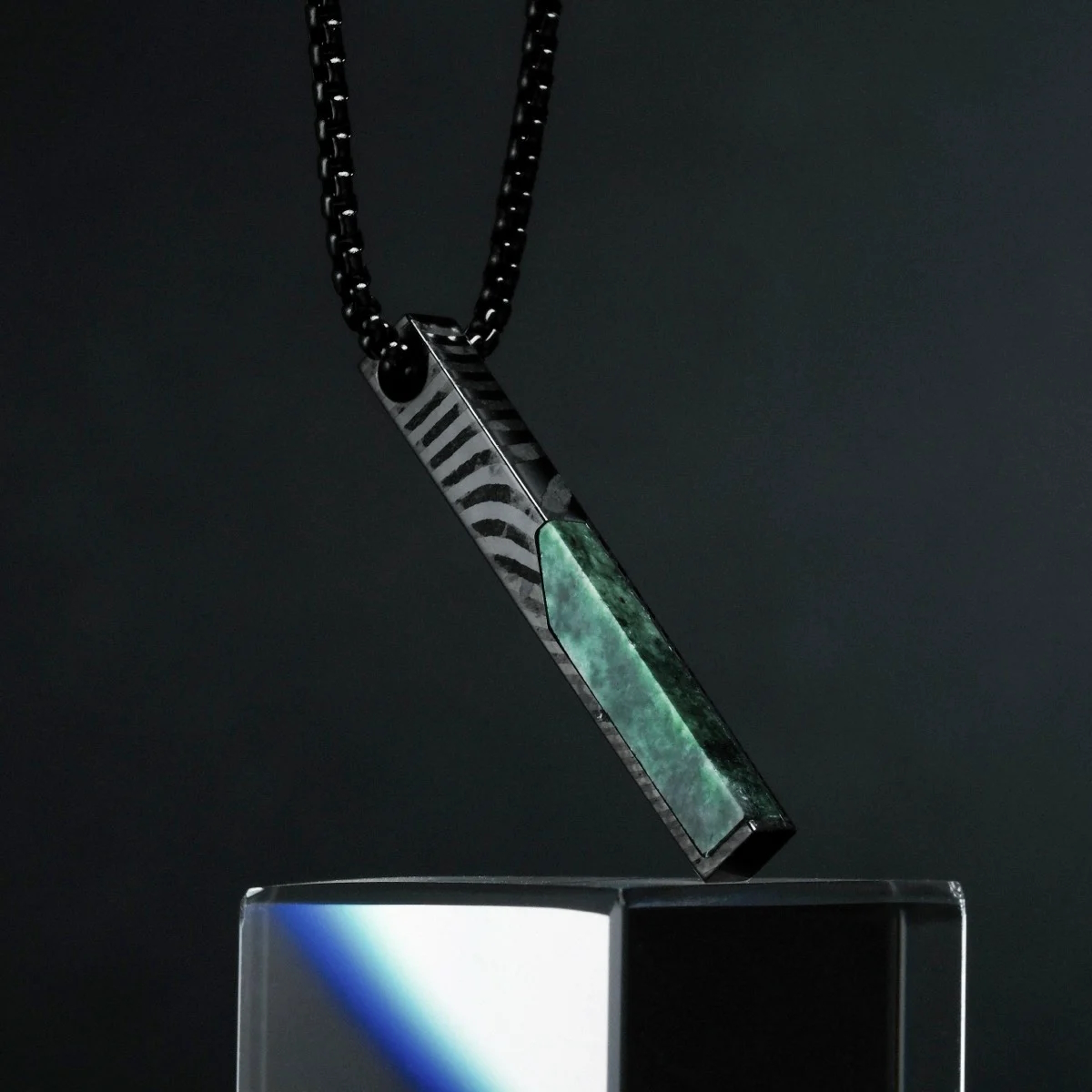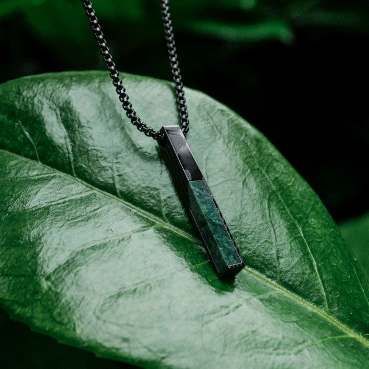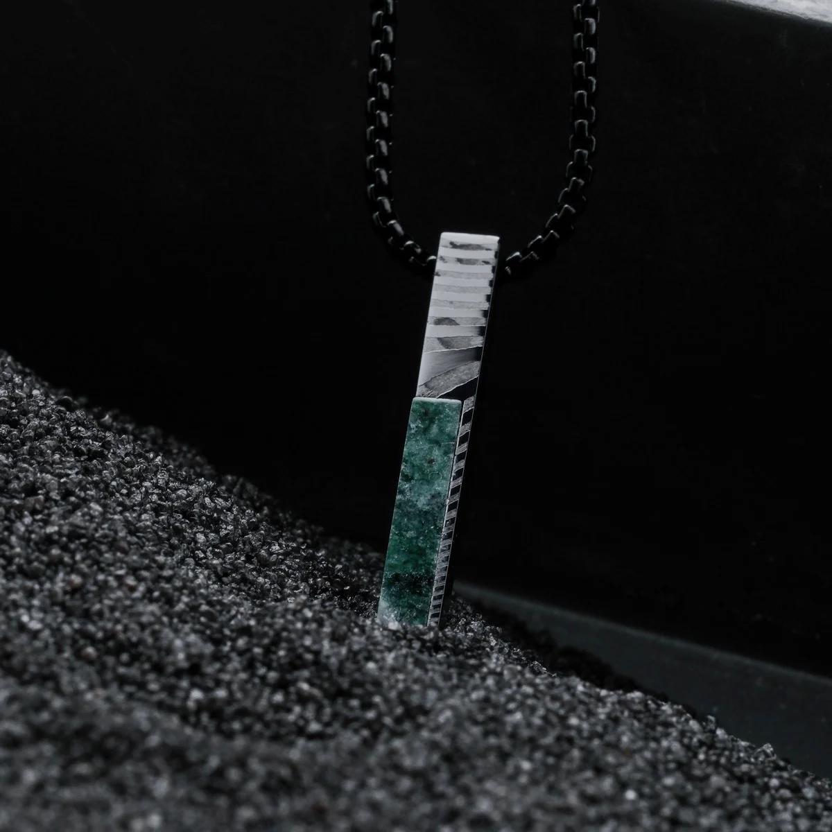 Finde mit unserer Halskette aus echtem Marmor und spannendem Damaszenerstahl ein perfektes Accessoire, das alle Blicke auf dich zieht.
