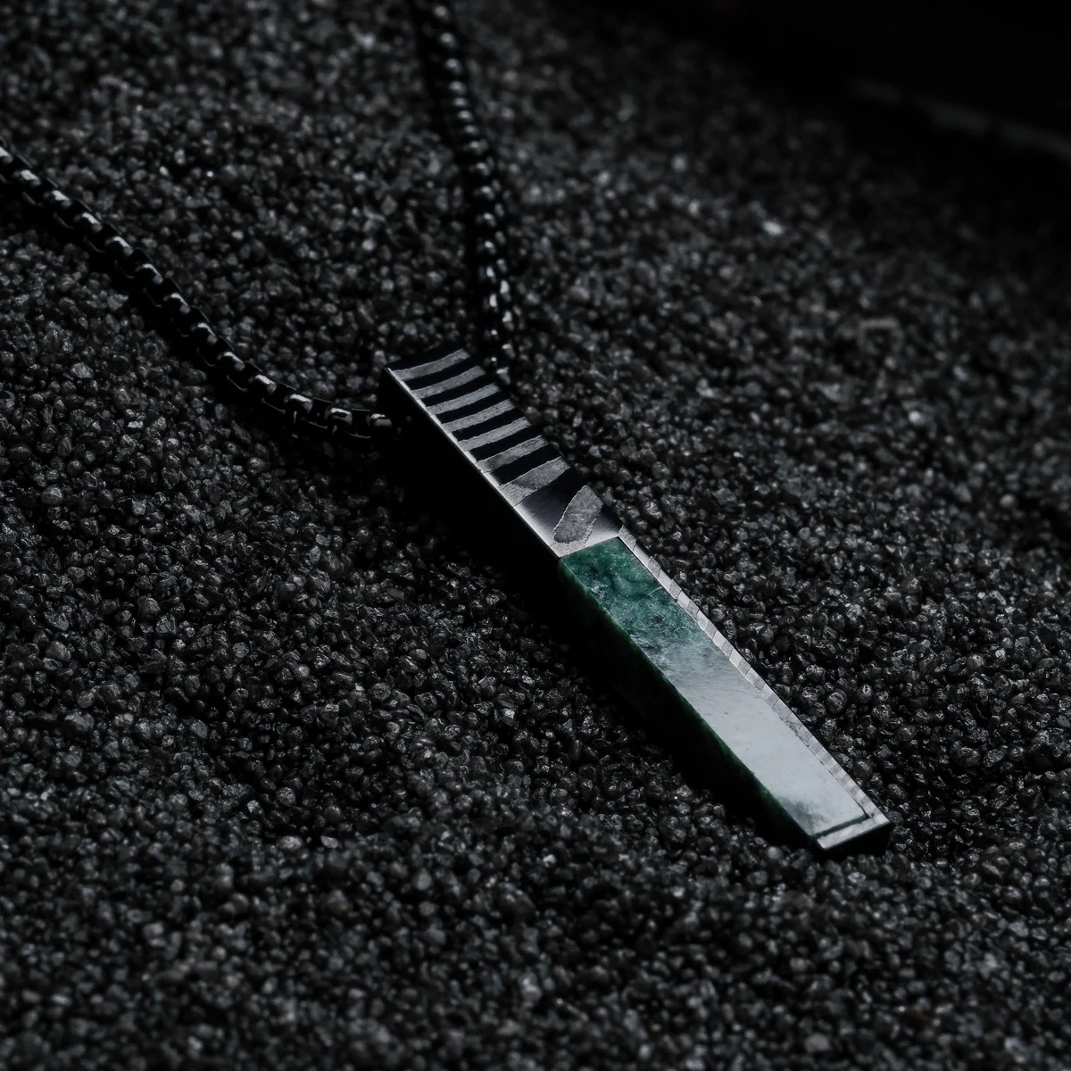 - Material: Dunkelgrauer Damaszenerstahl & echter, grüner Marmor