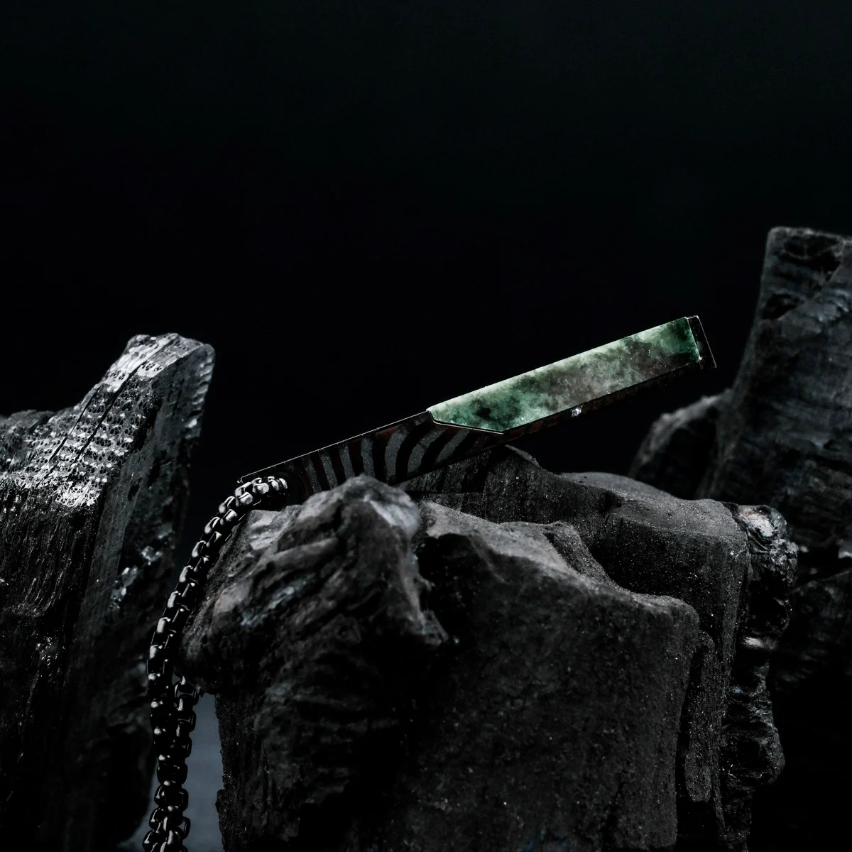 Dunkelgrauer Damaszenerstahl & echter, grüner Marmor