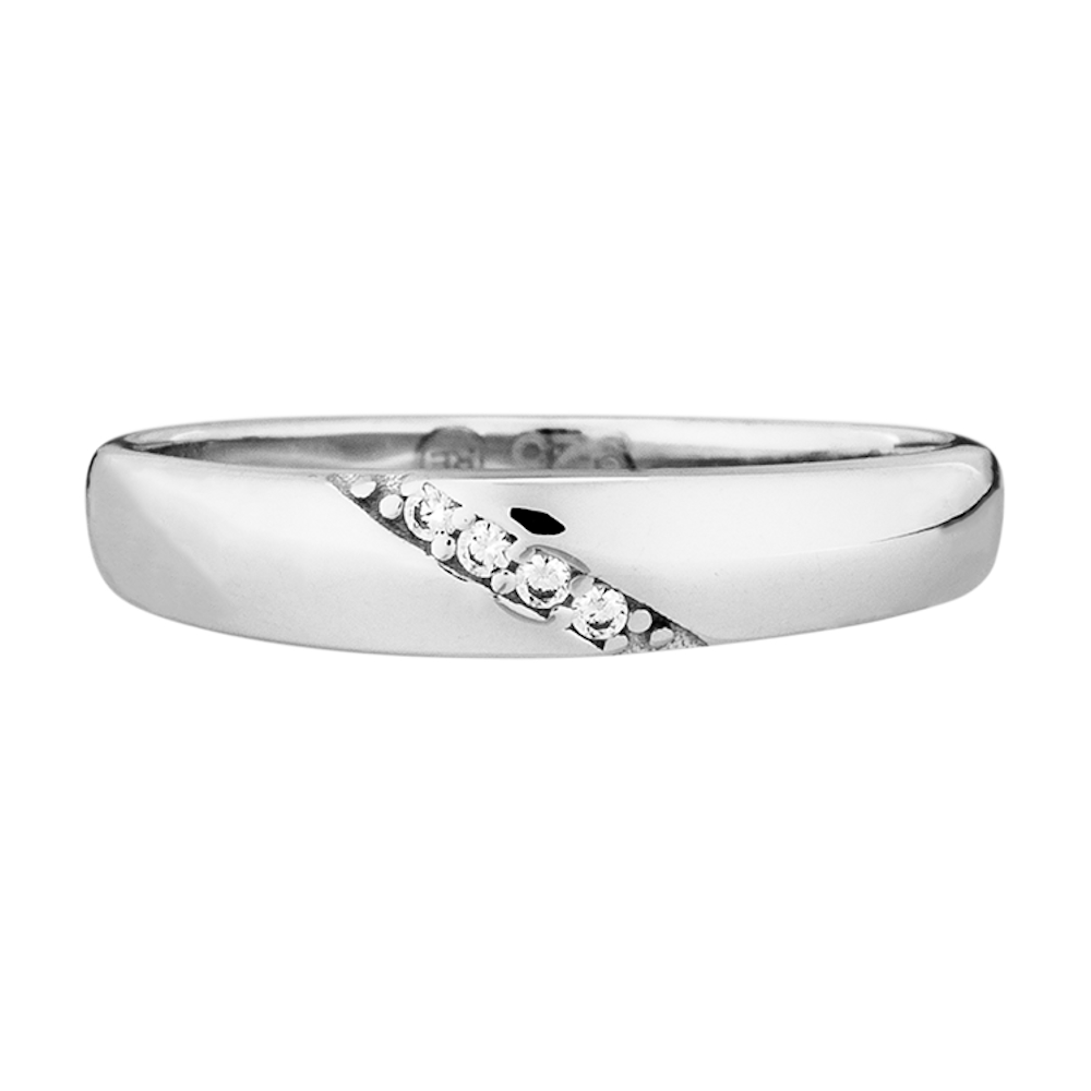 Dezente Raffinesse trifft auf zeitlose Eleganz: Dieser klassische Ring begeistert durch ein stilvolles Design mit dem gewissen Etwas. Vier funkelnde Zirkonia-Steine sind schräg in die Mitte der Ringschiene eingefasst – ein moderner Akzent, der für eine dynamische und zugleich elegante Ausstrahlung sorgt. Gefertigt aus feinem 925/- Sterling Silber und mit einer hochwertigen Rhodinierung veredelt, bietet der Ring dauerhaften Glanz und Schutz vor dem Anlaufen.