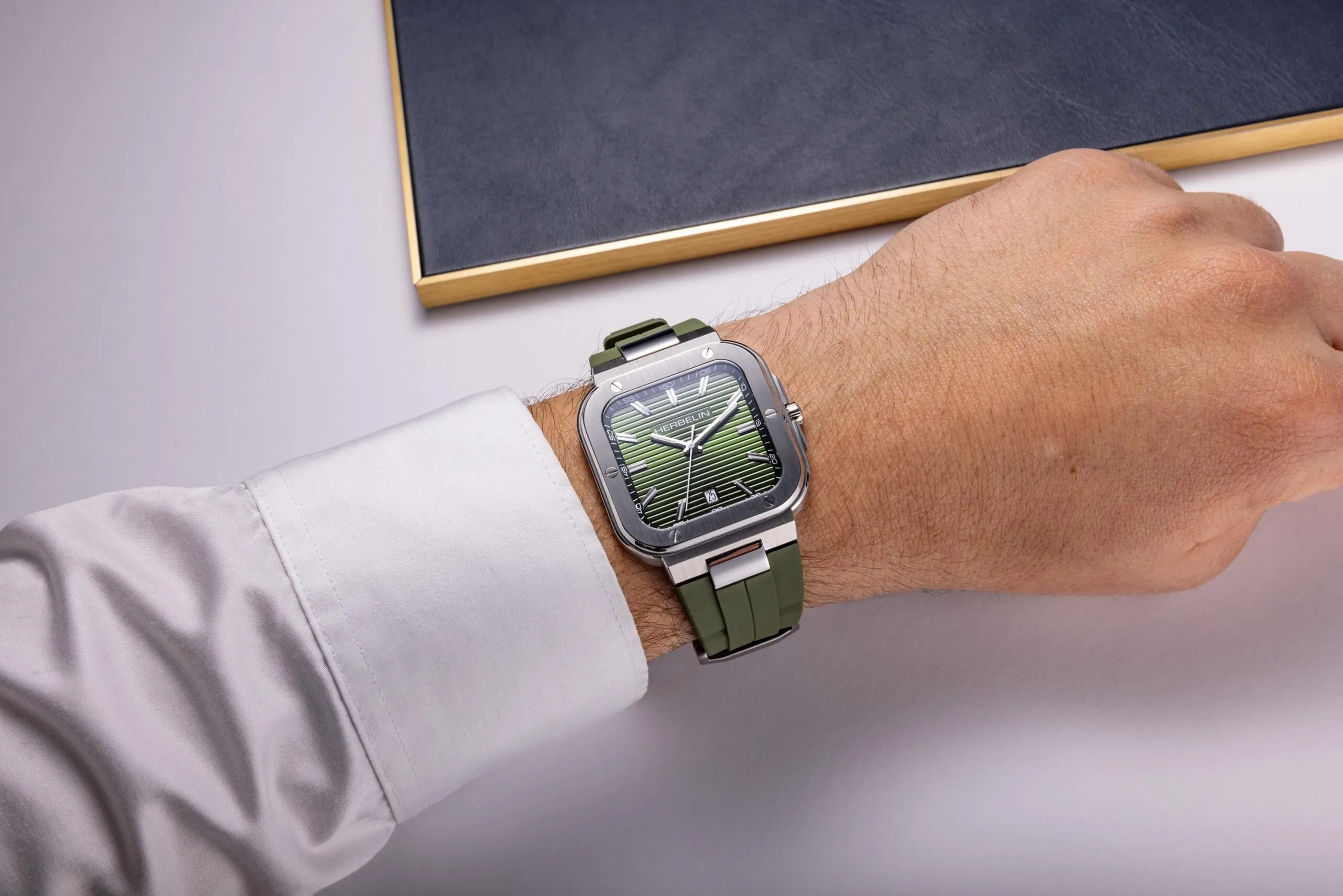 HERBELIN Herrenuhr CAP CAMARAT SQUARE khakigrün
